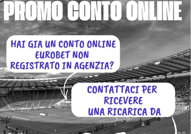 Benvenuti all'Agenzia di Scommesse Sportive Eurobet. Offriamo scommesse sportive e ippiche, scommesse virtuali, sala slot e molto altro.
